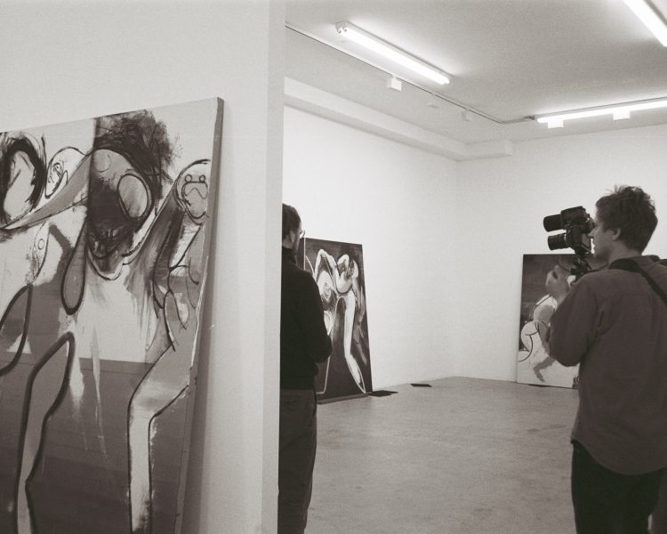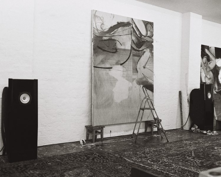 The making of a painting by Daniel Richter from the white canvas in the atelier in Berlin to the opening of the Exhibition in NYC at Grimm Gallery with a Concert by Goldene Zitronen at mercury lounge. For SZ Magazin N°26 / 2020, Text by Peter Richter.