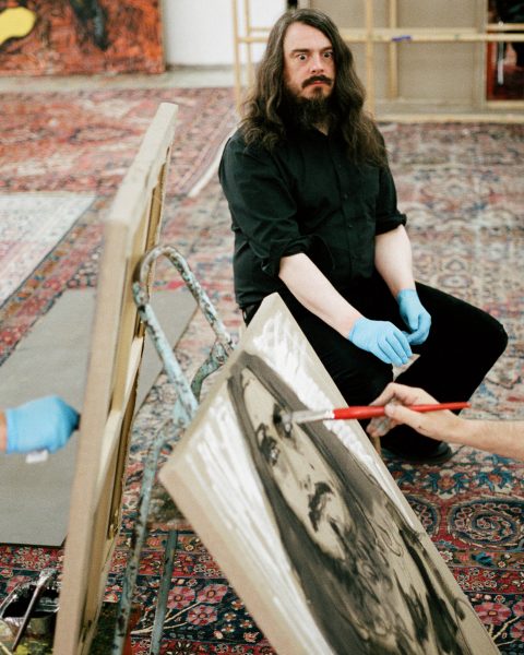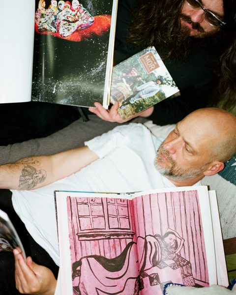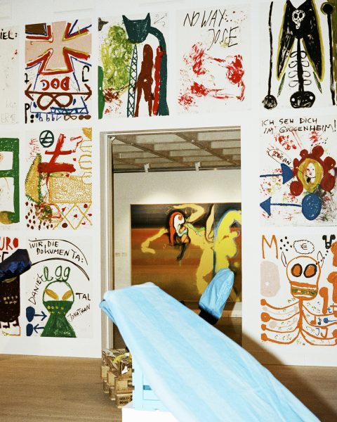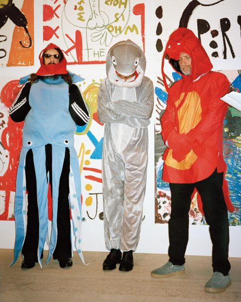 ‘The men who fell from earth’ is the title of an exhibition by Jonathan Meese, Daniel Richter and TAL R. It is a collaboration with the Holstebro Art Museum in Denmark, the German Museum Stade, and EMMA – Espoo Museum of Modern Art from 2017 to 2019. A book was published alongside the exhibition consisting of a photo series by Hanna Putz who accompanied Jonathan, Daniel and Tal in the making of the show until the opening night. It includes a text by Roberto Orth, was designed by Studio Martin Steiner and is published by Harpune Books and Kunstmuseums Holstebro.
